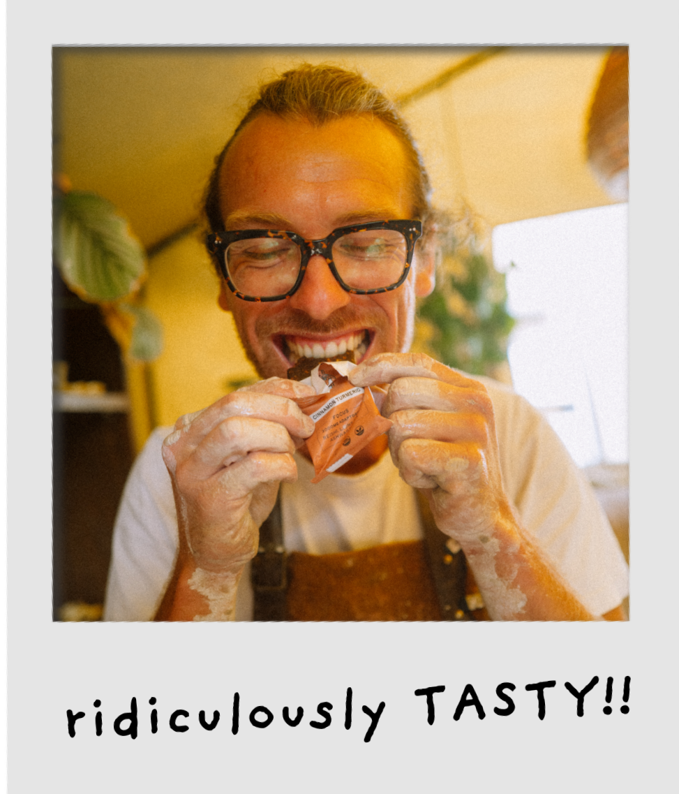 (All Organic) Dates • Oats • Almond Butter • Orange Juice Powder • Cashew Butter • Almonds • Cinnamon • Lion's Mane • Cashews • Reishi • Ginger • Turmeric • Ashwagandha
